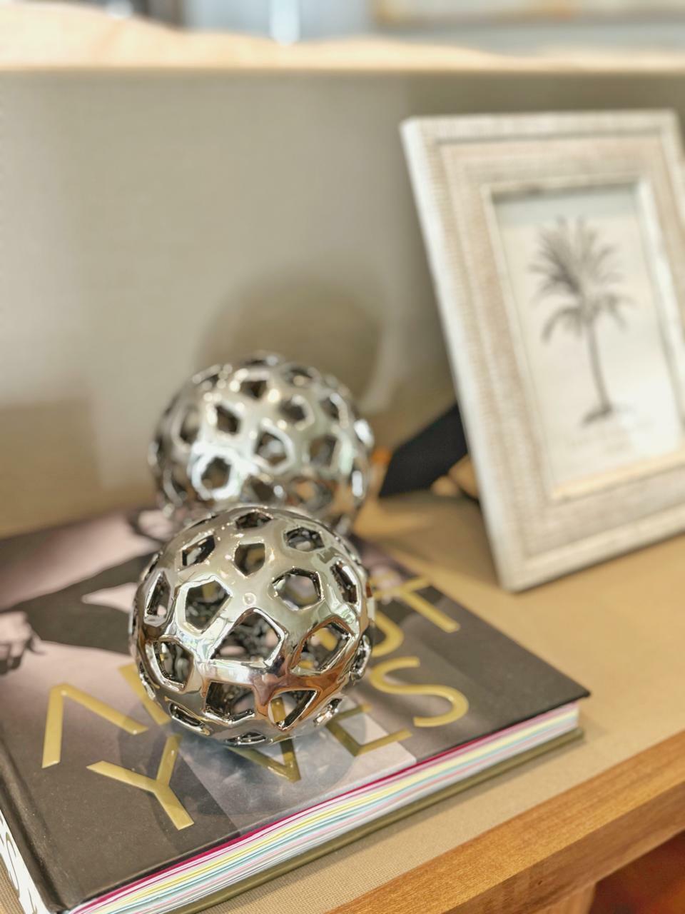 Detalle del producto:Esfera de cerámica con delicados relieves en formas geométricas
